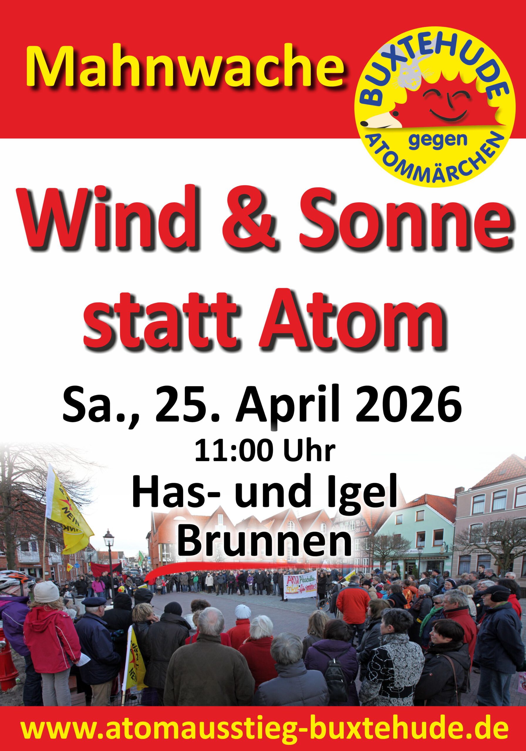 Zum 12. Jahrestag der Atomkatastrophe von Fukushima haben sich 60 Menschen zur Mahnwache am Has-und-Igel-Brunnen getroffen. Unsere Forderung: „Sofortiger Atomausstieg, nicht nur in Deutschland, sondern weltweit!“