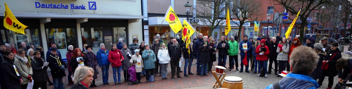 Am Samstag, den 9. Januar 2016, haben sich 80 Teilnehmer in der Buxtehuder Innenstadt zur Neujahrs-Mahnwache für den Atomausstieg versammelt.