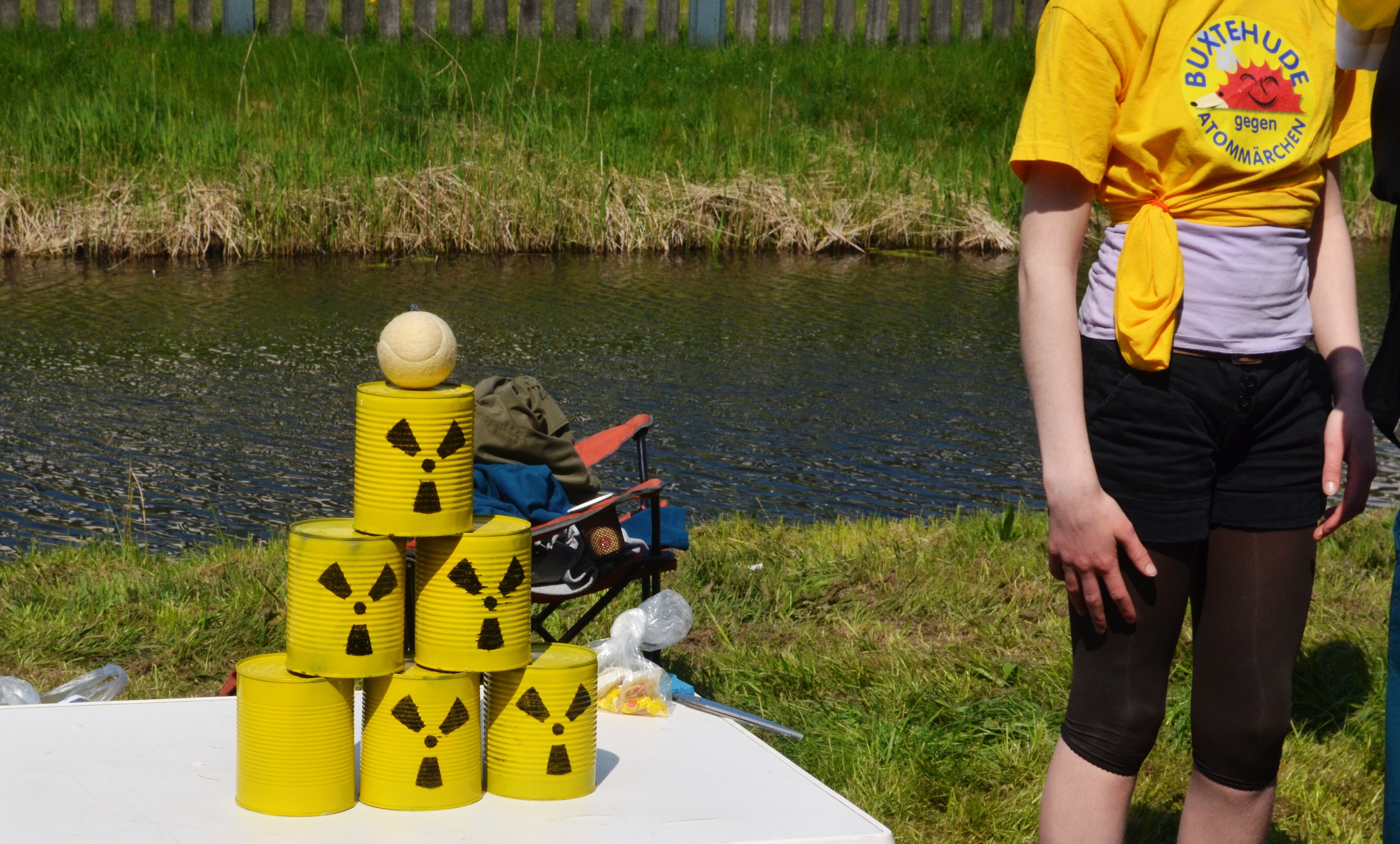 Rund sich 50 Atomkraftgegner aus dem Landkreis Stade haben sich auf den Weg über die Elbe zum AKW Brokdorf gemacht, um dort mit insgesamt 700 Demonstranten gemeinsam die zügige Abschaltung zu fordern. Christel Beckmann, Lehrerin aus Buxtehude, erläutert: „Während der versprochenen Restlaufzeit bis zum 31.12.2021 werden wir weiterhin permanent dem Risiko einer Reaktorkatstrophe vor unserer Haustür ausgesetzt und es wird täglich neuer Atommüll produziert. Wir fordern deshalb die Abschaltung jetzt, auch ohne dass es hier schon zu einer Katastrophe gekommen ist.“ Vor dem AKW gestalteten rund dreißig Initiativen ein buntes Kultur- und Protest-Programm mit vielen Infoständen und Mitmach-Aktionen. Die Buxtehuder Mahnwache für den Atomausstieg beteiligte sich mit „Atommüll“-Dosen-Werfen, einer „Atommüll-Schluck“-Maschine sowie einen „Reaktor-Stress-Test“. Die Aktionsgruppe „Robin Wood“ veranstaltete ein Schnupperklettern, das von vielen genutzt wurde, um das AKW und die Kulturmeile von den Baumwipfeln aus zu betrachten. Auf einer Graffiti-Spraywand brachten Kinder und Jugendliche Ihre Ablehnung der Atomkraft zum Ausdruck.