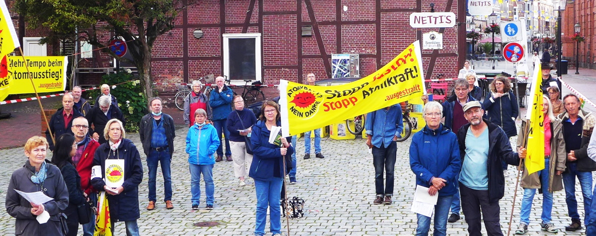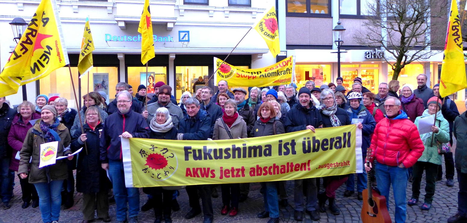 Alexander Tetsch war auf unsere Einladung hin Tags zuvor angereist, um auch auf der Mahnwache berichten zu können. Er war sehr erstaunt, dass wir in Buxtehude mit 70 Teilnehmern so eine große Gruppe sind, die weiß dass sowohl der Atomausstieg als auch die Folgen der Atomkraft noch lange nicht erledigt sind.